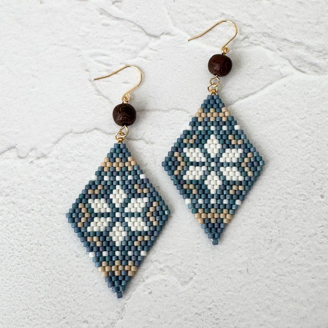 ノルディック デニムブルー ビーズアクセサリー ピアス イヤリング ボヘミアン 金属アレルギー対応