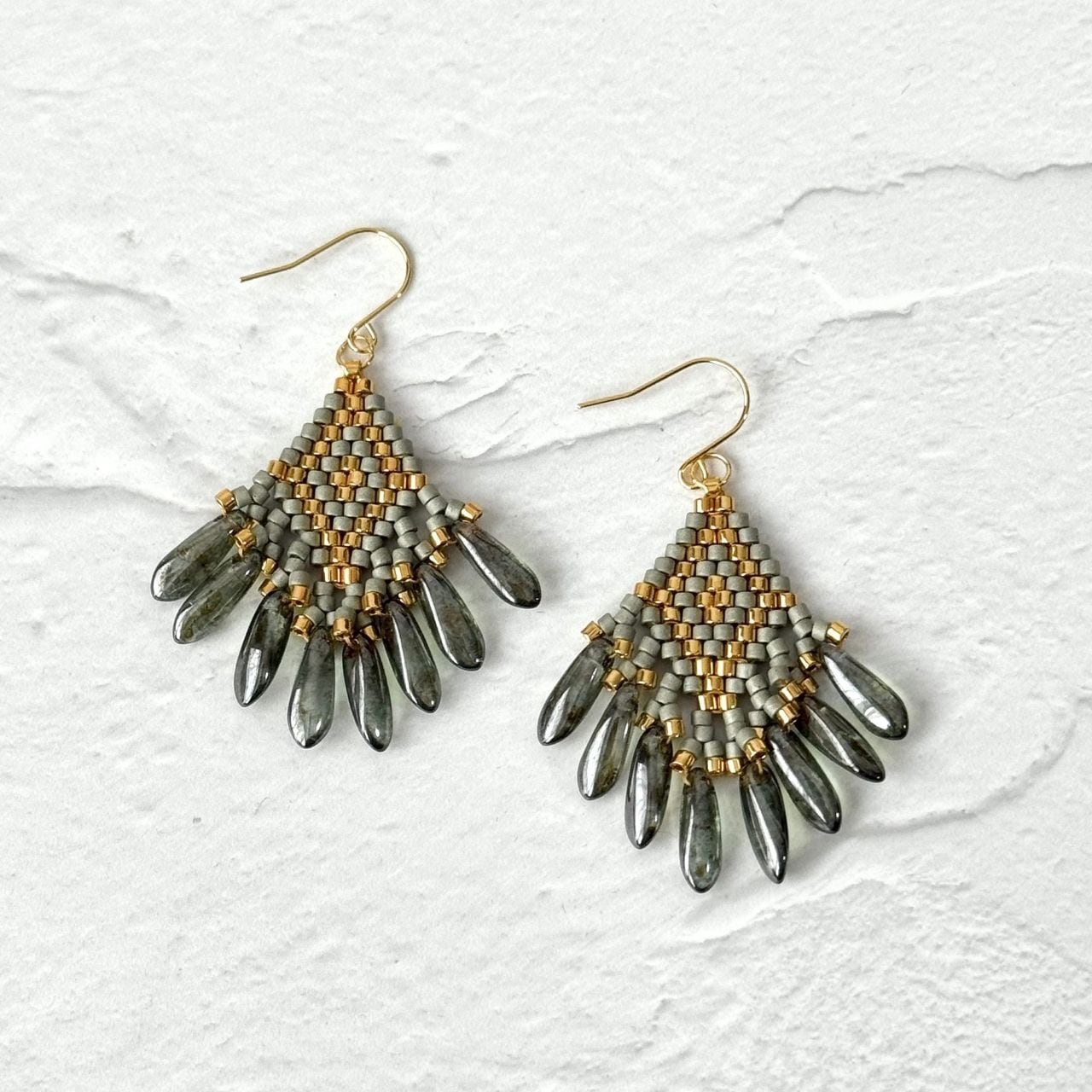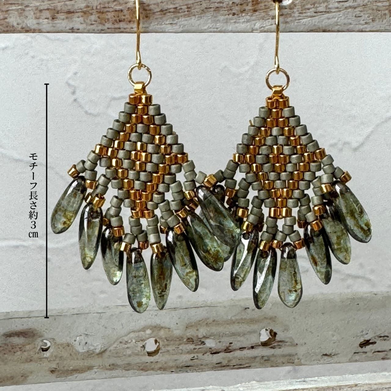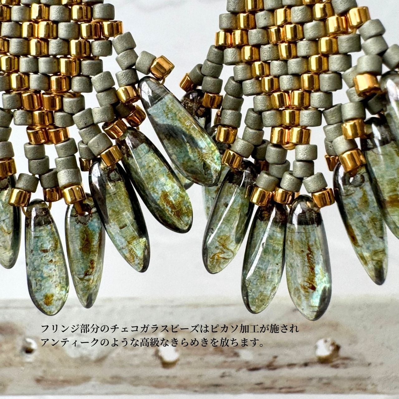 ボヘミアンチェコダガーフリンジ(M) ライトカーキ ビーズアクセサリー ピアス イヤリング クリスマス ギフト
