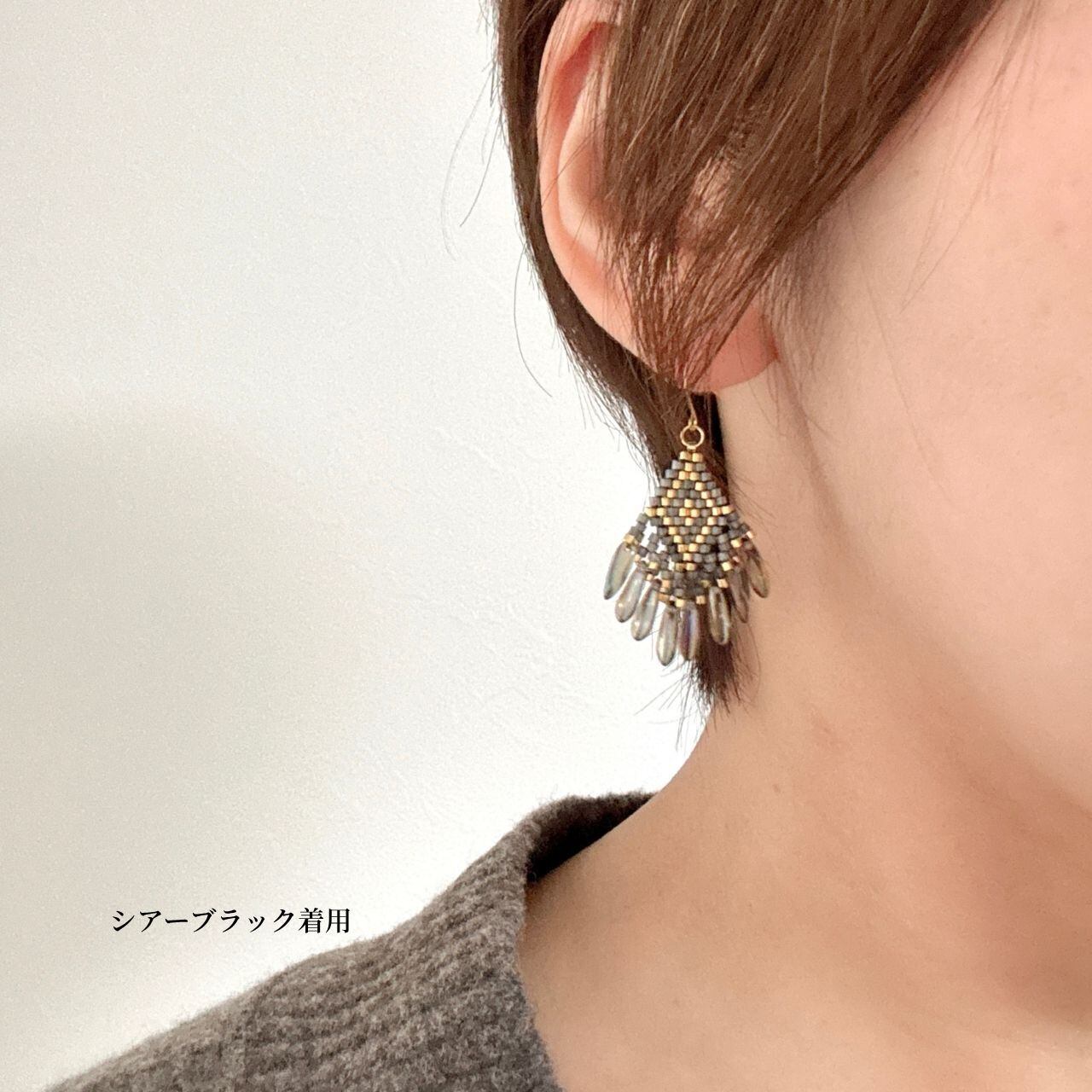 ・ダガー型チェコビーズを施したボヘミアンテイストが、大人のおしゃれ度をアップさせます。