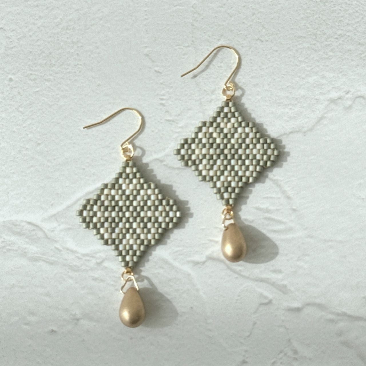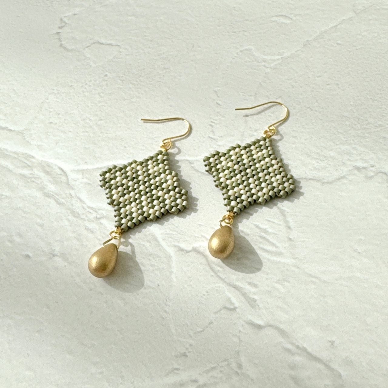 モロッカン ライトカーキ ビーズアクセサリー ピアス イヤリング 金属アレルギー対応 エスニック ボヘミアン