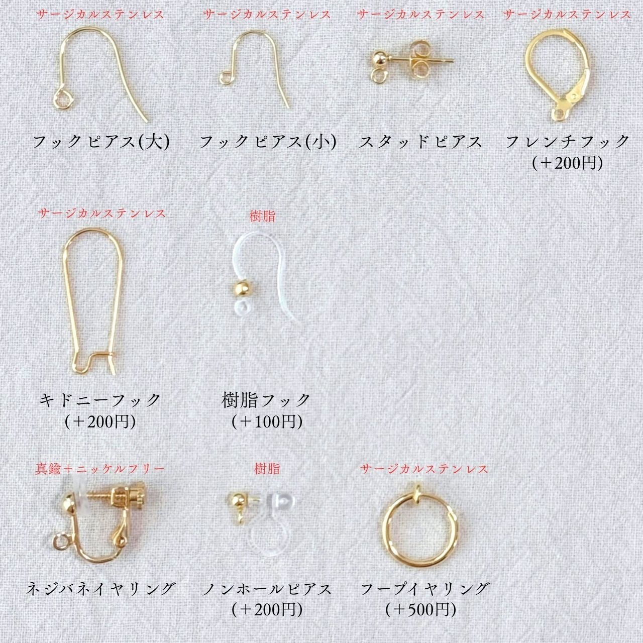 こちらは、ハンドメイドのピアス・イヤリングです。